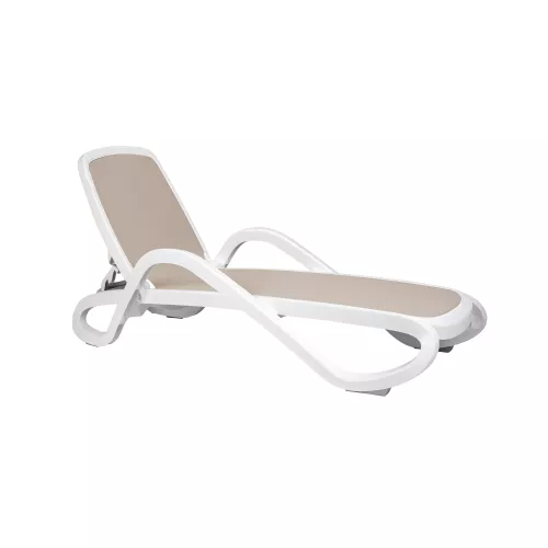 Buitenligbed met armleuningen, uitgevoerd met een buisvormig harsframe en ademende synthetische stof. De rugleuning is verstelbaar in vier standen voor optimaal comfort. Verkrijgbaar in verschillende frame- en stofkleurcombinaties. Dankzij het stapelbare ontwerp is dit ligbed ideaal voor terrassen, zwembadzones en professioneel horeca-gebruik.