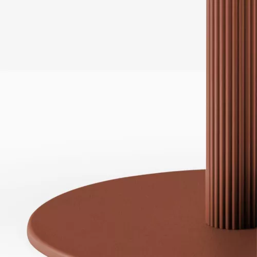 Elegante lijnen en een delicaat gevoel van verfijning kenmerken dit tafelonderstel, gedefinieerd door een geëxtrudeerde aluminium kolom met een verfijnd, op bloemen geïnspireerd profiel dat sierlijk over de volledige hoogte loopt. De sculpturale details voegen een subtiel maar toch onderscheidend karakter toe, waardoor het meubelstuk een uniek visueel ritme krijgt. Een ronde centrale voet – vervaardigd in gietijzer of staal – zorgt voor stabiliteit en een strakke, eigentijdse uitstraling, waardoor het geschikt is voor een breed scala aan horecagelegenheden. Harmonieus, lichtgewicht en prachtig expressief, combineert het moeiteloos met tafelbladen in cafés, restaurants, lounges en stijlvolle openbare ruimtes.