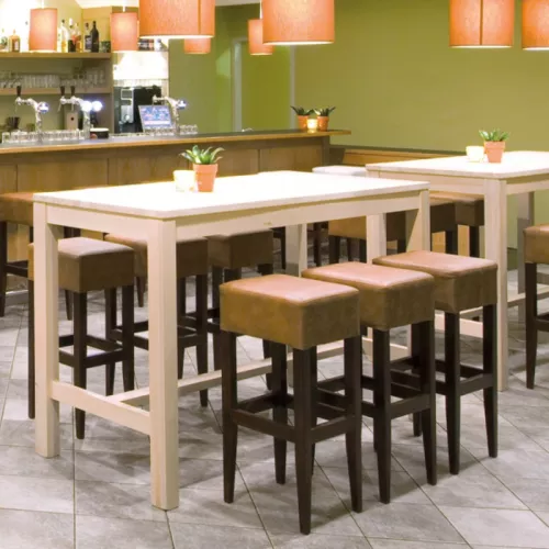 De Cleo Bar Table is een verfijnde en robuuste oplossing, ontworpen voor de horeca, die een balans biedt tussen tijdloze elegantie en functionaliteit. De tafel is gemaakt van massief eikenhout en heeft een prachtig glad blad en rechte poten van 7x7 cm, die zowel visuele stabiliteit als duurzaamheid garanderen. De tafel is verkrijgbaar in een breed scala aan afmetingen en houtsoorten, waardoor hij naadloos past in diverse bar-, restaurant- of café-interieurs. Voor extra duurzaamheid en bescherming in drukbezochte ruimtes kan de Cleo Bar Table optioneel worden uitgerust met een roestvrijstalen voetstrip. Ideaal voor horecagelegenheden die op zoek zijn naar een natuurlijke, duurzame en aanpasbare oplossing voor hun drukbezochte barruimtes.
