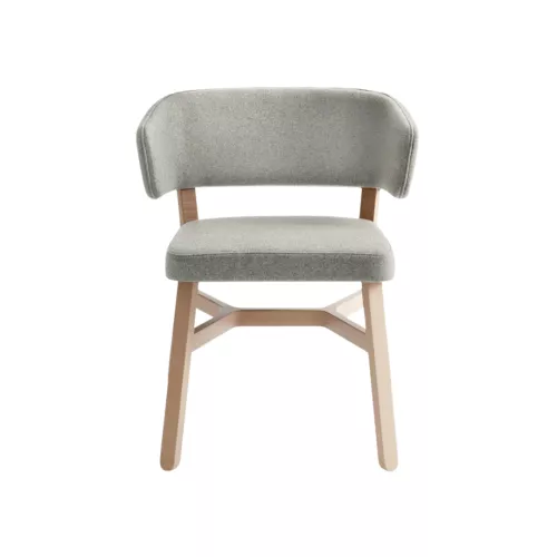 Croissant 571 is een elegante gestoffeerde stoel met een frame van massief beukenhout. De gebogen rugleuning biedt extra comfort en ondersteuning, terwijl de zitting zacht en aangenaam is. Verkrijgbaar in diverse houtafwerkingen en een breed scala aan professionele stoffen voor een persoonlijke touch.