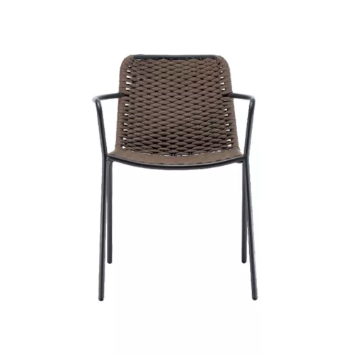 Cruise Lux is een stijlvolle en duurzame buitenstoel. De gegalvaniseerde aluminium structuur in antraciet wordt omhuld met een mix van bruine textileen touw en rubber, wat zorgt voor stevigheid en comfort. Het stapelbare ontwerp is perfect voor terrassen en horecaruimtes. Licht van gewicht, maar stevig gebouwd. Verkoopbaar per 4 stuks per doos.