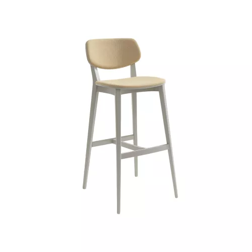 Doll 556 is a robust and refined barstool, designed exclusively for horeca environments. The solid beech wood frame is customizable with a selection of wood stains or RAL color finishes. Both seat and backrest are upholstered in durable, professional-grade fabrics or faux leather, offering comfort and elegance. Its versatile design adapts easily to diverse commercial interiors.