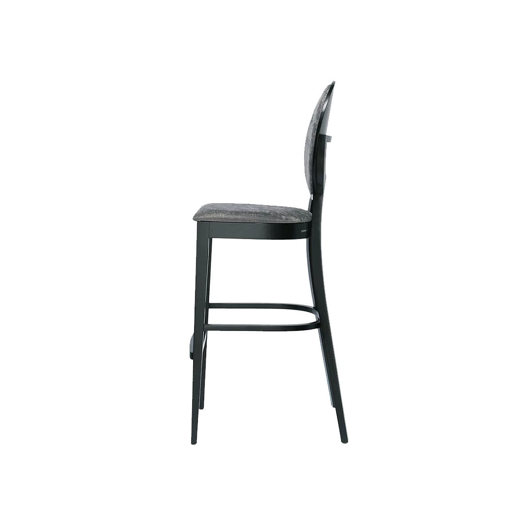 De houten barkruk Doris BK combineert klassiek design met modern comfort. Hij is gemaakt van een massief beukenhouten frame met een houten voetensteun en heeft een gestoffeerde zitting en rugleuning. Verkrijgbaar in een breed scala aan professionele stoffen of kunstleer en diverse houtbeitskleuren, is hij perfect voor bars en horecagelegenheden.