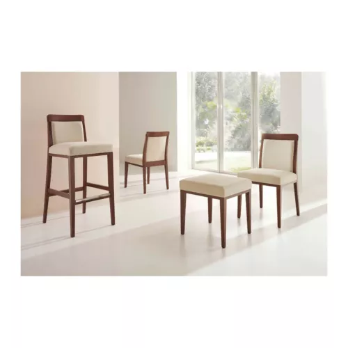 Dubai S is een duurzame stoel met een beukenhouten frame, afgewerkt met polyurethaanlak voor hoge weerstand tegen intensief gebruik. De zitting en rugleuning zijn bekleed met hoogwaardig schuim voor langdurig comfort. Verkrijgbaar in diverse houtkleuren en aanpasbaar met een breed scala aan professionele stoffen of kunstleer, perfect voor elke stijlvolle inrichting.