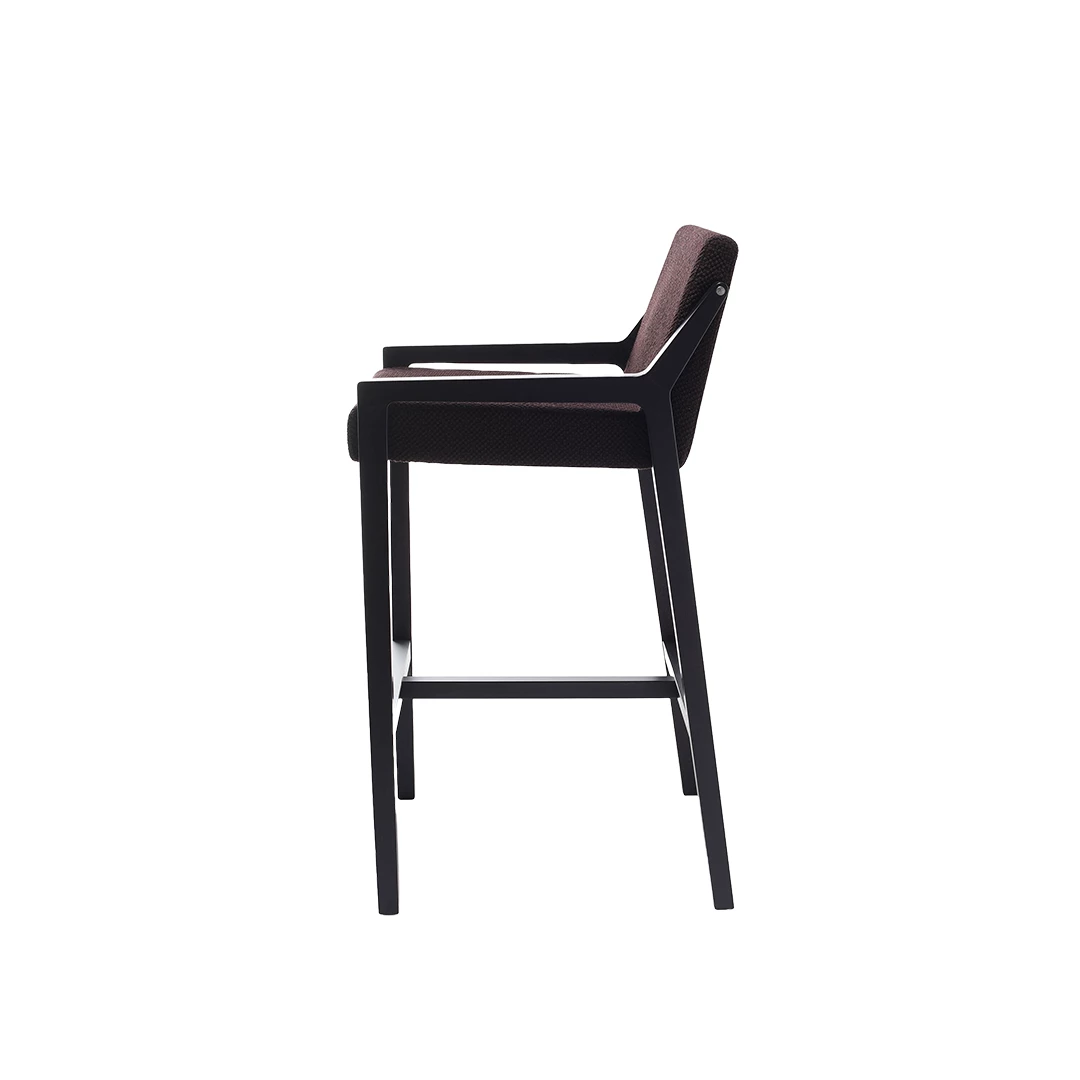 De houten barkruk Fred BK belichaamt de geest van gastvrijheid en combineert comfort met verfijnd design. De zacht gestoffeerde zitting en rugleuning, verkrijgbaar in diverse stoffen of kunstleer, rusten op een massief beukenhouten frame met een aluminium voetensteun. De zachte lijnen van de kuip contrasteren prachtig met de robuuste structuur en creëren een gastvrije, tijdloze esthetiek.