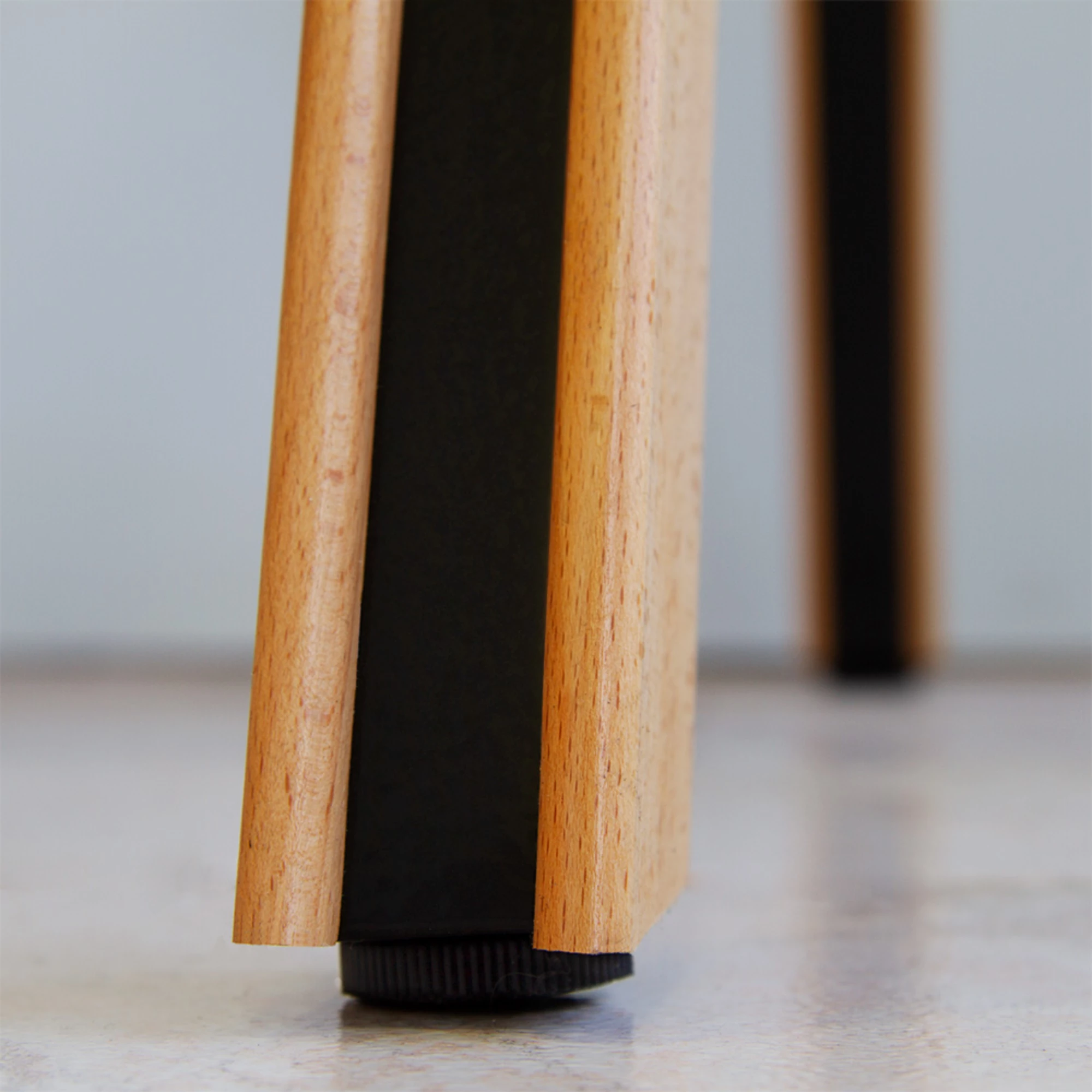 Jean W is een stijlvol tafelonderstel voor horecalocaties, met een ijzeren kern en bekleding van beukenhouten latten in diverse afwerkingen. Het onderstel heeft een stalen kruis en verstelbare voetjes. Wordt ongemonteerd geleverd. Geschikt voor bladen tot 90x90 cm of ⌀100 cm.