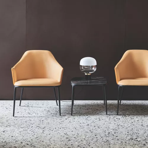 Lea AP M TS is een elegante loungefauteuil, speciaal ontworpen voor horecagebruik. Het metalen frame is verkrijgbaar in diverse kleuren en afwerkingen, mat of glanzend. De stoel is volledig gestoffeerd met keuze uit professionele stoffen of kunstleer. Geschikt voor lobbies, lounges en andere stijlvolle horecagelegenheden.