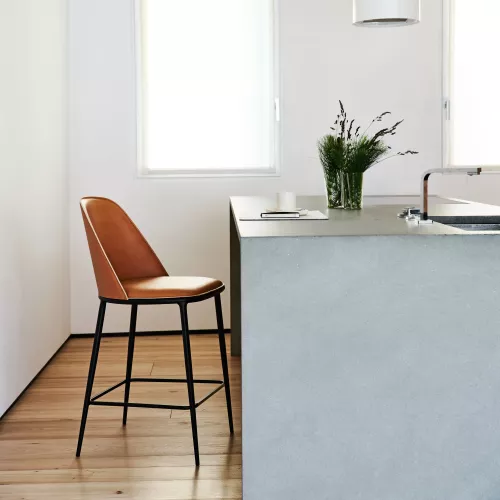 Een tijdloze kruk met een strak metalen onderstel met vier poten en verfijnde leren bekleding. De zitting en rugleuning zijn bekleed met eersteklas leer of luxueus Toscaans leer, wat zowel duurzaamheid als verfijning biedt. Met een hoogte van 75 H is deze kruk perfect voor bars en elegante horecagelegenheden die op zoek zijn naar een vleugje Italiaans vakmanschap.