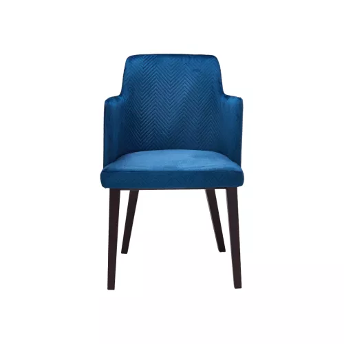 This chair features a solid beech wood frame, finished with a protective polyurethane lacquer that enhances durability and resists daily wear. The seat and backrest are cushioned with high-density foam to maintain comfort and shape even under heavy, continuous use. Offering excellent versatility, the product can be fully customized with a broad selection of high-quality professional fabrics available in a variety of textures and colors, allowing seamless integration into any interior style or branding concept.