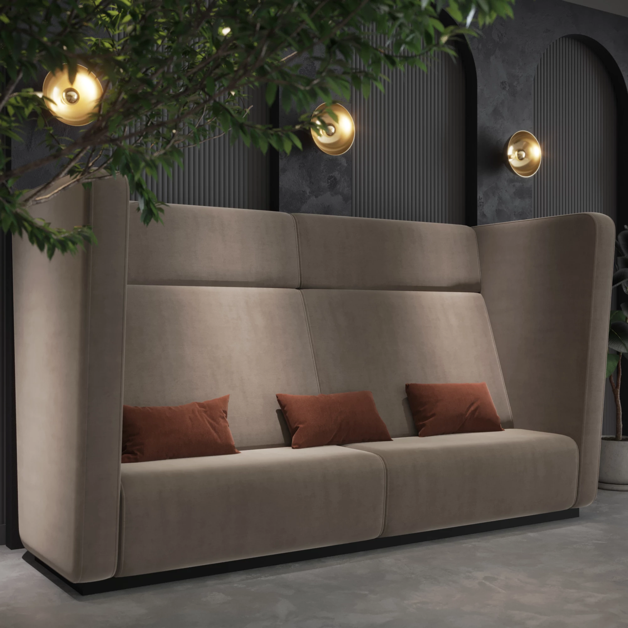 De Parleur Bench is een modulaire bank met hoge rugleuning en armleuningen, ontworpen voor horecaomgevingen. Bekleed met hoogwaardige schuimvulling, beschikbaar in professioneel textiel of kunstleer. Afmetingen aanpasbaar naar wens van de klant.