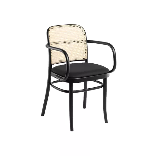 The Pavol A FS wooden chair with armrests combines 1930s classic design with modern comfort. Its beech wood frame supports an upholstered seat and elegant cane backrest, available in a wide range of fabrics or faux leather. Offered in multiple wood stain colors, it’s perfect for stylish and versatile HoReCa interiors.