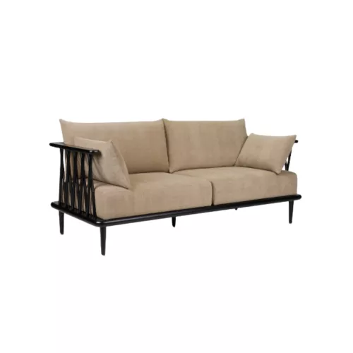Prometeus Double is a refined hospitality sofa inspired by the calm, vertical rhythm of bamboo forests. Its solid ash wood frame is available in various stain finishes, paired with professional upholstery fabrics. The relaxed shape and optional side pillows offer both elegance and comfort—ideal for lounge areas, hotel lobbies, and serene horeca spaces.