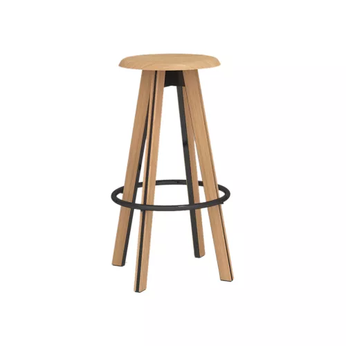 Jean is a stylish and durable stool designed with four iron legs clad in natural wooden slats, combining industrial strength with a warm, organic look. Its stable square base (40x40 cm) ensures balance and functionality in any bar, café, or bistro setting. A convenient footrest adds ergonomic support, while the 77 cm seat height make it ideal for bar table seating. Perfect for high-traffic commercial environments, Jean blends raw materials with comfort and design versatility.