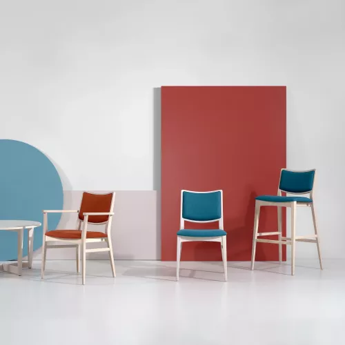 Soul Lounge is a lounge chair with armrests, combining timeless design with comfort and hospitality-grade durability. Its beechwood frame is available in multiple stain finishes and pairs with professional fabric upholstery. Ideal for refined horeca interiors, its generous proportions and clean lines make it a versatile choice for lobbies, lounges, and stylish public areas.