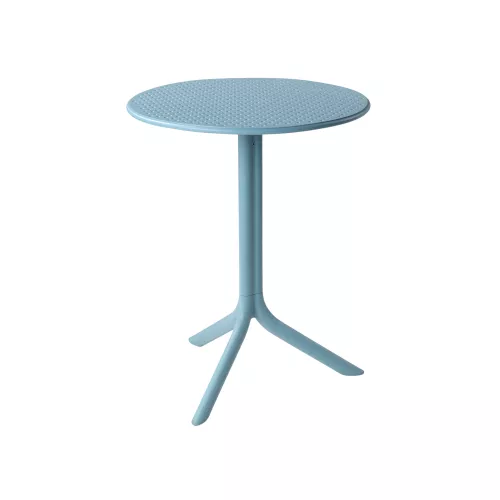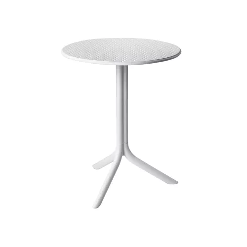 De Step-tafel is ideaal voor elke horeca buitenruimte. Gemaakt van gelijkmatig gekleurd glasvezel-polypropyleen met UV-bescherming. De tafel heeft een centrale kolom met drie poten, is demonteerbaar, mat afgewerkt en recyclebaar.