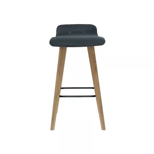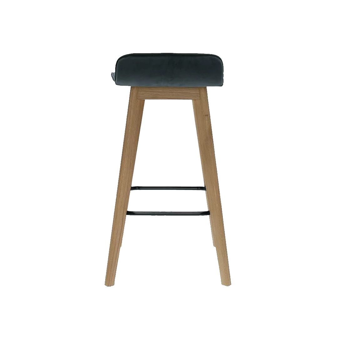 The Stream BK barstool combines contemporary minimalism with high-quality craftsmanship. Its beechwood frame supports a comfortable upholstered seat, while a sturdy metal footrest adds stability. Available in multiple wood stains and professional fabrics or faux leather finishes, it is designed to complement a variety of HORECA interiors, from modern bars to stylish lounges.