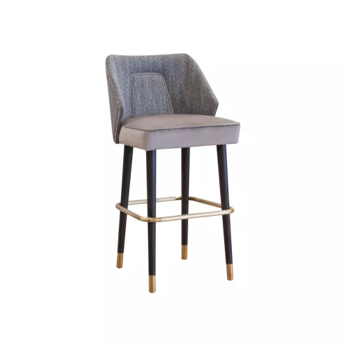 Temple BK is a modern barstool with a solid beech wood frame and a polished brass metal footrest. Featuring a comfortable upholstered seat and back, it is padded with high-resolution foam for long-term durability. With numerous finish and upholstery options, it is an ideal choice for stylish horeca locations and upscale interiors.