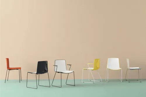 De Tweet-collectie biedt een reeks zitoplossingen die een rationeel, strak ontwerp combineren met een brede keuze aan frames en afwerkingen, voor maximale aanpasbaarheid in zowel commerciële als huiselijke omgevingen. De stapelbare Tweet Soft fauteuil heeft een gestoffeerde schaal in stof of kunstleer en een robuust frame van Ø14 mm stalen buis. Het frame is verkrijgbaar in verchroomd of poedergecoat staal, met een duurzame polypropyleen schaal voor extra comfort en duurzaamheid.