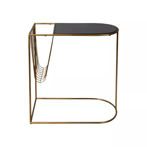 The Velora Side Table brings elegance and function to any horeca space. Its copper-toned steel frame and glossy smoky glass top create a refined look, while the built-in magazine rack adds practicality. With its slender silhouette and 51 cm height, it fits beautifully next to lounge seating, creating a warm and inviting corner for guests.