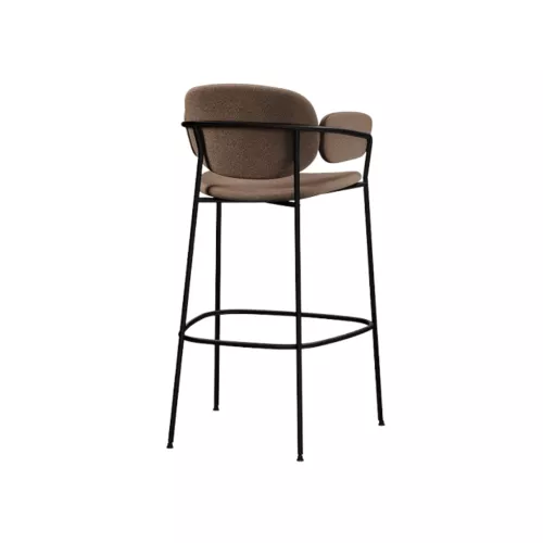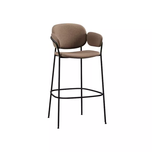 Vyn BK is a stylish upholstered barstool with armrests and a durable metal frame, designed for comfort and longevity. Perfect for indoor restaurants, cafés, and waiting areas, it blends modern design with practicality, providing a sleek and welcoming seating solution for any interior.