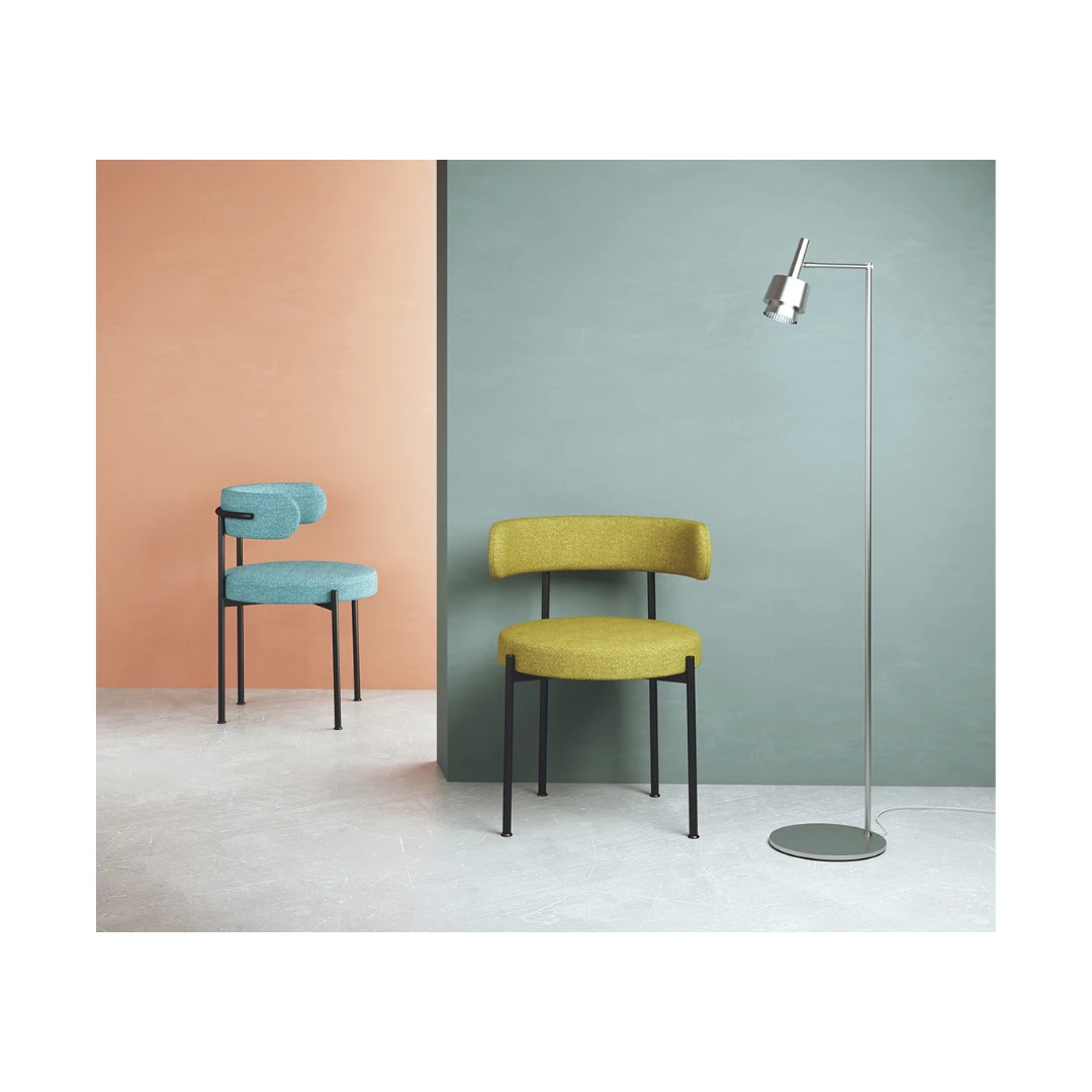 De Yoko-stoel biedt een perfecte mix van moderne eenvoud en stevigheid. Het frame is gemaakt van stalen buis met een diameter van 20 mm, afgewerkt met elegante matzwarte poten. De zitting en rugleuning zijn vervaardigd uit hoogwaardig multiplex en volledig gestoffeerd voor optimaal zitcomfort. Bekleding kan worden uitgevoerd met eigen stof (COM) of leer (COL) van de klant, wat zorgt voor maximale flexibiliteit in ontwerp en toepassing in diverse interieurs.