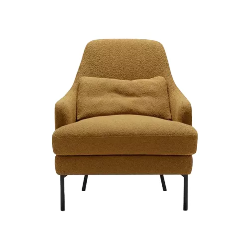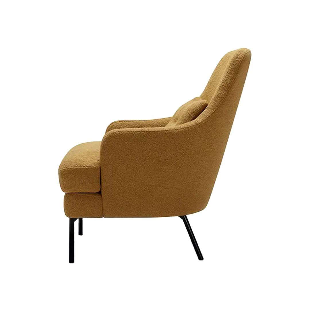 Alisson is an elegant upholstered armchair that blends beauty and balanced design in perfect harmony. Its high, minimalistic metal legs give the fully upholstered seat, back, and armrests a light, hovering appearance. Enhanced with an extra lumbar cushion, it offers inviting comfort for lounges, lobbies, waiting areas, offices, and other horeca spaces. Available in a wide range of professional fabrics.