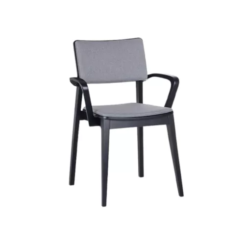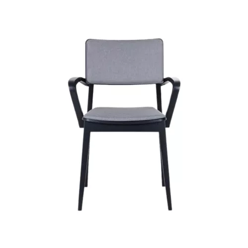 The Alles A is a refined wooden armchair crafted from solid beech wood and beech plywood, featuring an upholstered seat and veneer back for comfort and style. Perfect for restaurants, cafés, bistros, and fast-food interiors, it combines durability, elegance, and timeless design to enhance any indoor dining space.