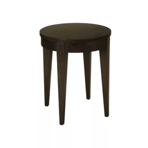 Alveta Round is a compact wooden coffee table with a clean round top, made entirely of solid beech wood. Available in a variety of stain finishes and optional decorative metal inserts. With its 60 cm height and 50 cm diameter, it fits perfectly in lounge areas, cafés, and hotel lobbies, blending seamlessly into a wide range of horeca interior styles.
