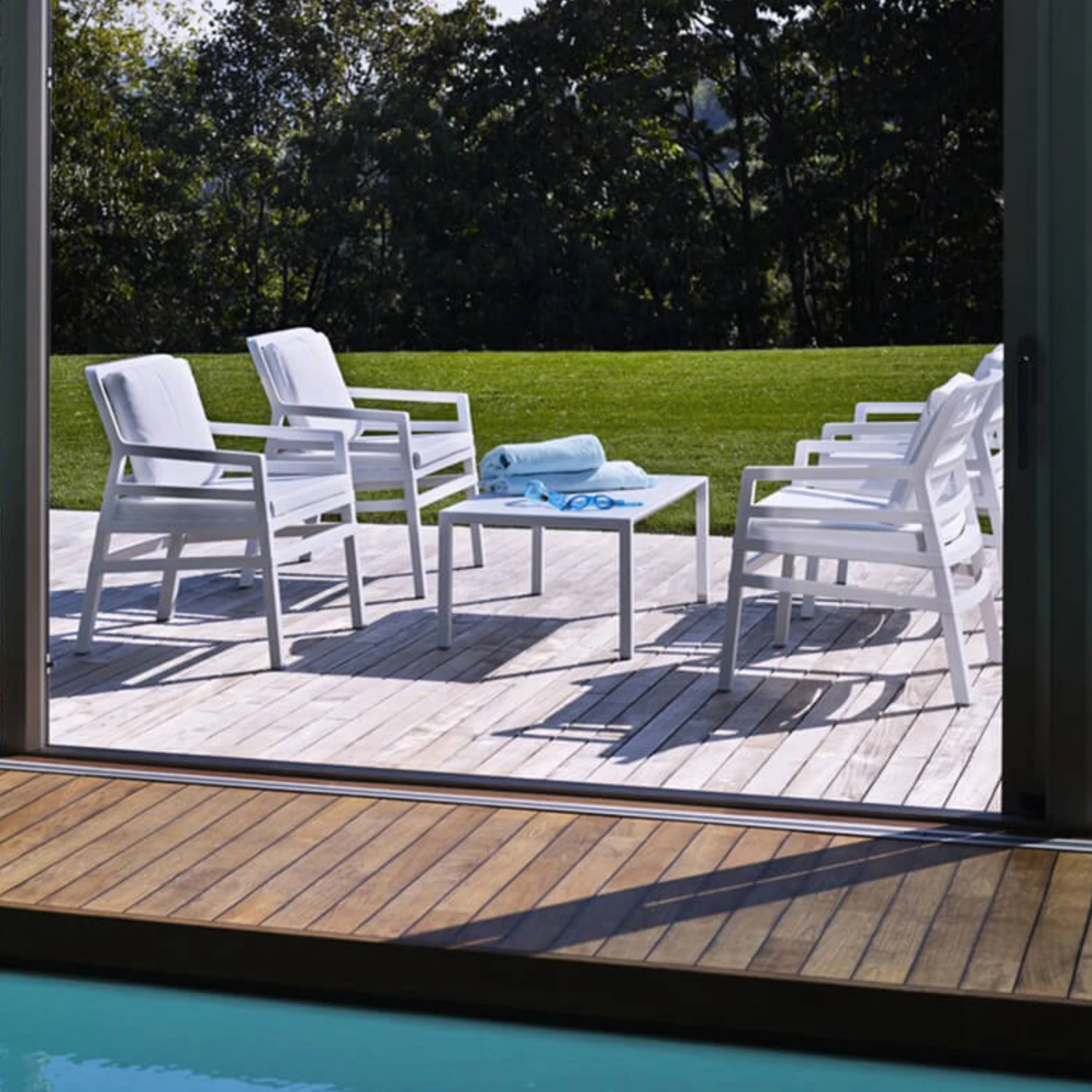 Regular care of outdoor fabrics helps maintain their appearance and extend durability. Remove dust and dirt frequently with a soft brush or vacuum at low suction. Treat stains promptly: absorb liquids with a white cloth and dab non-greasy marks with a damp sponge or lint-free cloth. If needed, wash covers gently at low temperatures using mild detergent. Avoid abrasive cleaners, solvents, bleach, or high heat. Always allow fabrics and padding to air dry fully before use or storage. These are general recommendations and do not guarantee complete stain removal—please follow product-specific instructions and labels.