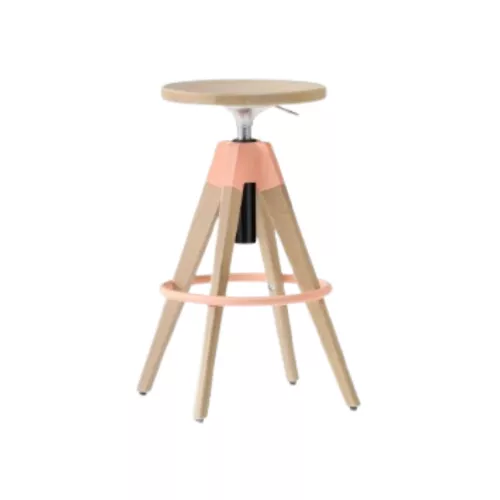 The Arki-Stool is part of the Arki collection, which reinterprets industrial design with functionality in mind. This barstool features a solid oak seat and legs, a swivel mechanism, and a gas lift for easy height adjustment. A steel footrest contrasts beautifully with the natural wood finish. Crafted from solid oak with a matte, water-based anti-scratch finish, the stool also includes a black die-cast aluminum column with gas lift. The steel footrest (Ø20 mm) adds durability. Equipped with interchangeable felt inserts (type “15”) for sensitive surfaces like wood, ceramic, and marble, and plastic inserts (type “17”) for soft or rough floors such as carpet, concrete, or metal.