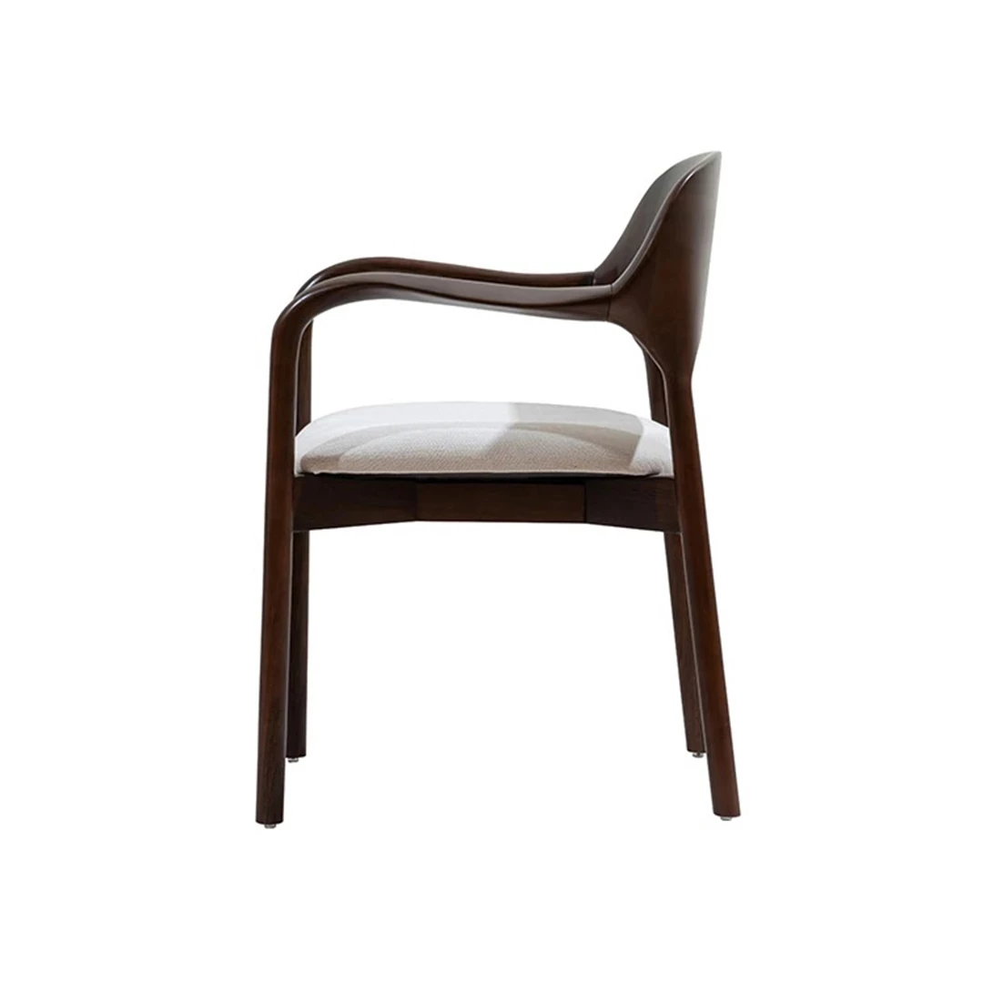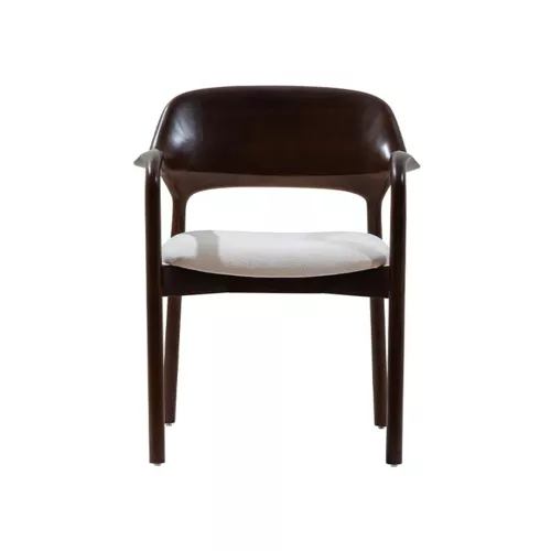 The Arven chair blends timeless design with lasting comfort. Its wooden frame and backrest are complemented by a soft upholstered seat, while the rounded lines of the armrests create a distinctive, elegant look. Available in a wide range of professional fabrics, Arven is ideal for horeca locations seeking style and durability.
