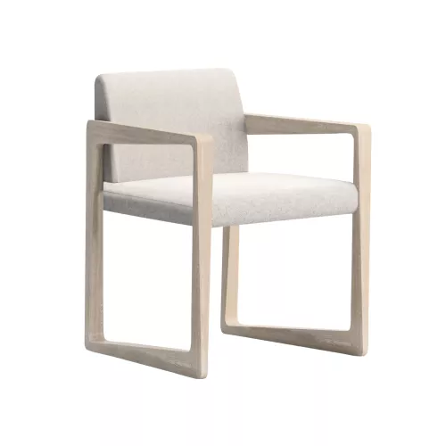 Askew 5C35 is a refined chair with armrests, crafted from durable beech wood and available in a wide selection of stained or RAL finishes. Its upholstered seat and backrest come in high-performance fabrics or faux leather, perfect for horeca settings. A blend of modern and classic lines makes it versatile for many interior design concepts.