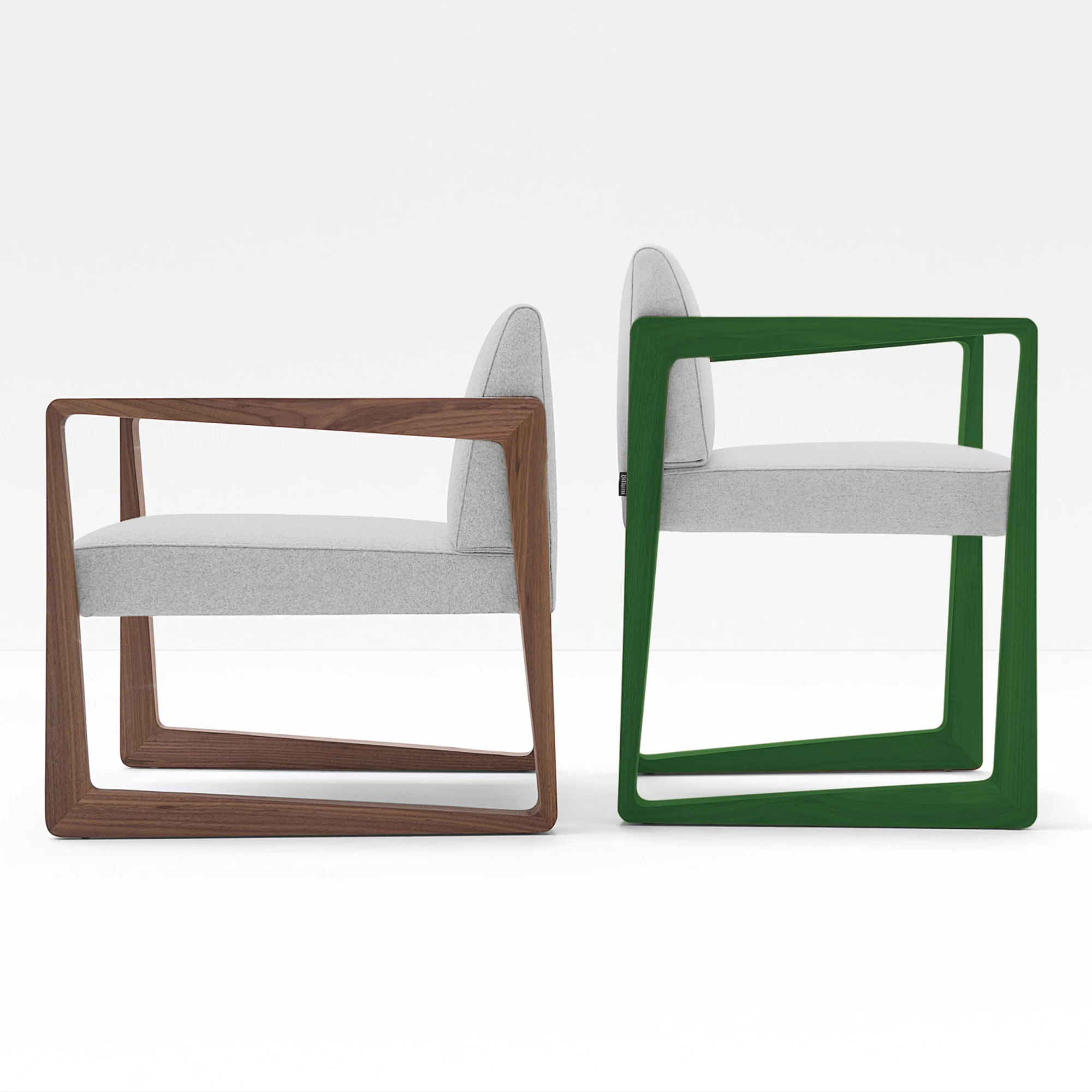 The Askew 5C36 lounge armchair features a sturdy beech wood frame available in various stain finishes. It offers a comfortable upholstered seat and backrest, crafted from a wide selection of durable professional fabrics or faux leather. Designed for any horeca setting, this chair’s versatile style and customization options ensure it complements diverse interior designs effortlessly.