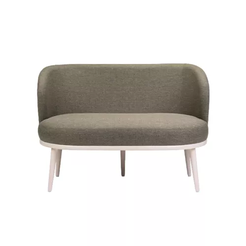 Aurette Double is a stylish lounge sofa designed for horeca spaces. Built with a solid beech wood frame available in a range of stain colors, it features a fully upholstered seat and backrest. The soft, curved lines and elegant design provide a refined look, while the wide choice of professional fabrics or faux leather allows complete customization to suit various hospitality interiors.