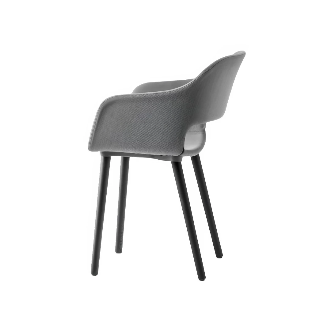 Babila 2756 masterfully balances tradition and innovation with elegant simplicity. Its timeless design emphasizes clean lines and functional beauty. This armchair features an upholstered shell in fabric or eco-leather, supported by a die-cast aluminium frame and solid ash wood legs.