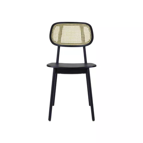 Beneton W is a refined expression of Scandinavian design. Crafted from solid oak or beech wood, it features a veneer seat and a woven cane backrest. Its clean lines and sturdy structure make it ideal for interiors that value style and substance.