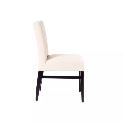 Bernard S Square Capitons is an elegant wooden chair crafted with a solid beech wood frame available in various stain finishes. Designed for horeca spaces, it features a comfortable upholstered seat and decorative capitons stitching on the backrest. Choose from a wide range of durable fabrics or faux leather to match any interior style.