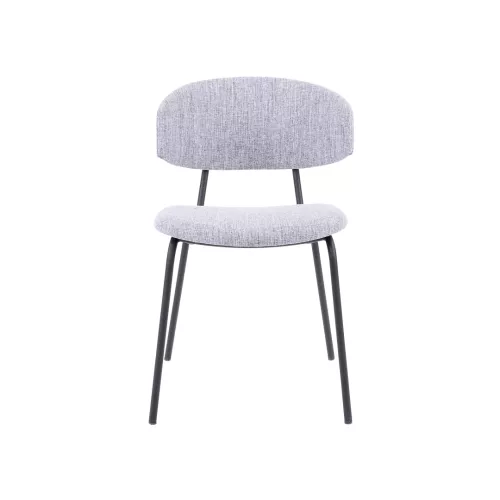Blissful is a contemporary chair featuring a black metal frame with a fully upholstered seat and backrest. Its clean lines and comfortable design make it a perfect fit for any space. The upholstery is available in a wide range of professional fabrics or faux leather.