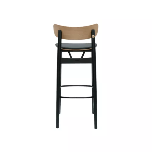 The Bobby BK is a compact, lightweight armchair designed especially for hospitality environments. Built on a durable beech wood frame, it withstands high traffic while offering versatility through a wide selection of upholstery and wood finishes. The seat and backrest can be customized in different colors or upholstered with customer-supplied fabric. A distinctive back-leg support serves as a stylish and practical detail for hanging coats or bags, making it both elegant and functional. The Bobby collection includes models with or without armrests, a lounge version, and a barstool.
