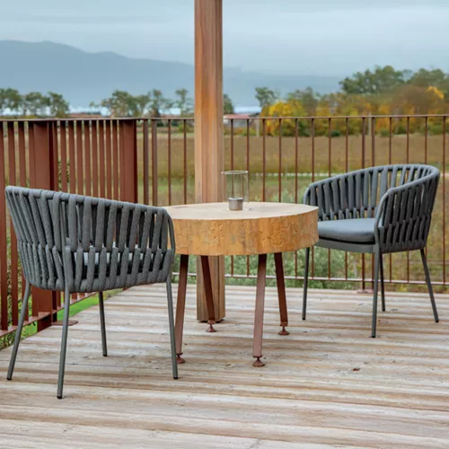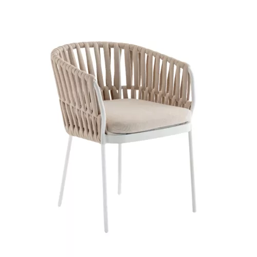 Boho is a sturdy and stylish outdoor armchair, crafted with a durable Aluminium frame and covered with elegant acrylic rope. It includes an upholstered cushion in Olefin fabric for added comfort. Stackable and weather-resistant, Boho is perfect for any HoReCa terrace, combining functionality with a relaxed aesthetic.