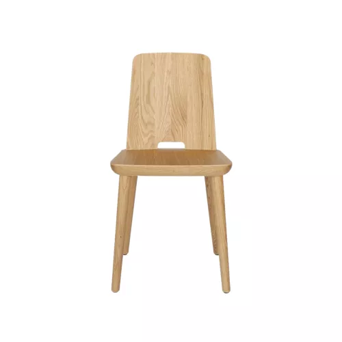 The Bregenz chair is made from natural ash wood, featuring a linear and versatile design, making it ideal for commercial environments. It is easy to move and transport, thanks to the hole in the backrest, located at seat level. The seat is made of solid ash wood with a veneer finish. It is coated with a polyurethane lacquer, ensuring durability for high-traffic commercial use. Available in various colors, with an open finish. Optional protective floor feet made of plastic or felt are available. The sophisticated proportions and rigorous design make this chair a widely used piece of furniture.