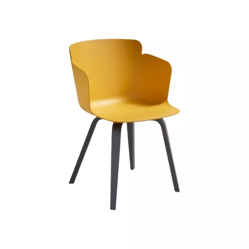 The Calla P L_N PP chair with armrests blends practicality and style. Featuring legs made of stained veneered wood in multiple finishes and a durable polypropylene shell in various colors, it offers versatility and comfort. Ideal for contemporary horeca settings, it adds a refined and modern touch.