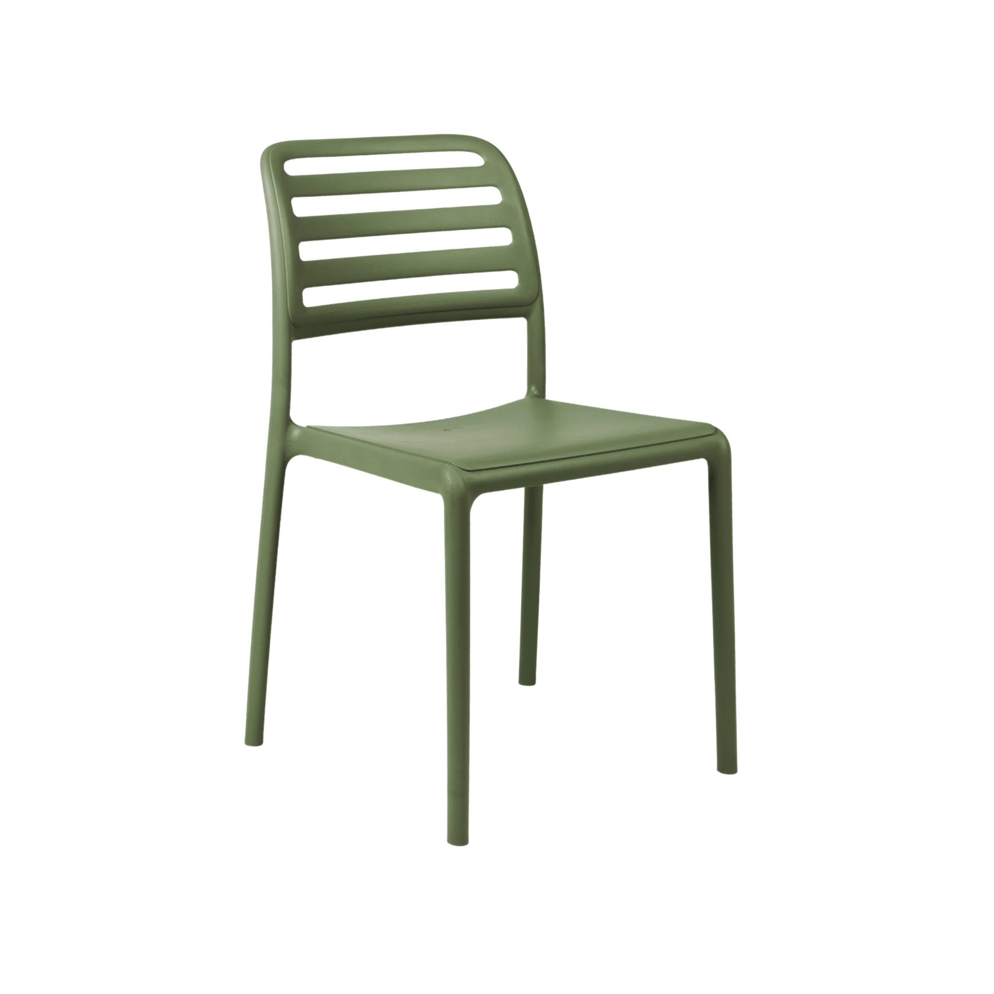 The Costa Bistrot Chair is designed specifically for commercial use, making it ideal for busy outdoor restaurants, cafés, bistros, and other hospitality environments. Made from fiber-glass reinforced polypropylene, it combines exceptional strength with lightweight ease of handling, ensuring it can withstand daily heavy use. Non-slip feet provide safety and stability, while the matt finish adds a sophisticated, professional look. Available in six contemporary colors — White, Antracite, Tortora, Agave, Celeste — the Costa Bistrot Chair complements any commercial outdoor setting. Its durable polypropylene frame resists wear, weather, and frequent movement, providing reliable performance for your establishment while offering comfort and style to your guests. Perfect for creating stylish, durable, and functional dining areas that meet the demands of high-traffic hospitality environments.