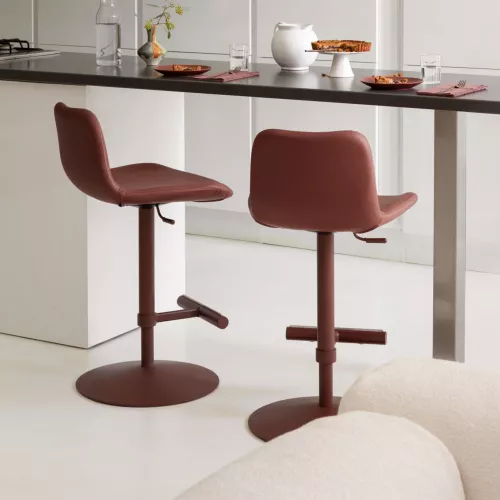 Dalia SG TS stool featuring a swivel and height-adjustable metal base available in various finishes. The seat is upholstered in fabric, leather, or leatherette, offering comfort and elegance for any professional space.