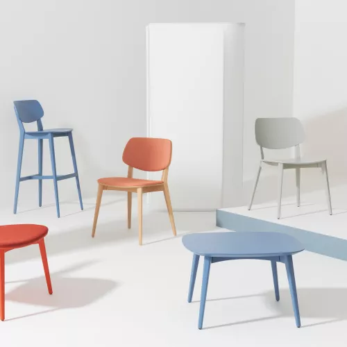 Doll 551 is a refined chair designed for horeca environments, featuring a beech wood frame and a durable wooden backrest. The upholstered seat is available in a wide range of professional fabrics or faux leather, ensuring comfort and resilience. With RAL or stained beech color options, it adapts to various interior design styles, blending elegance with practicality.