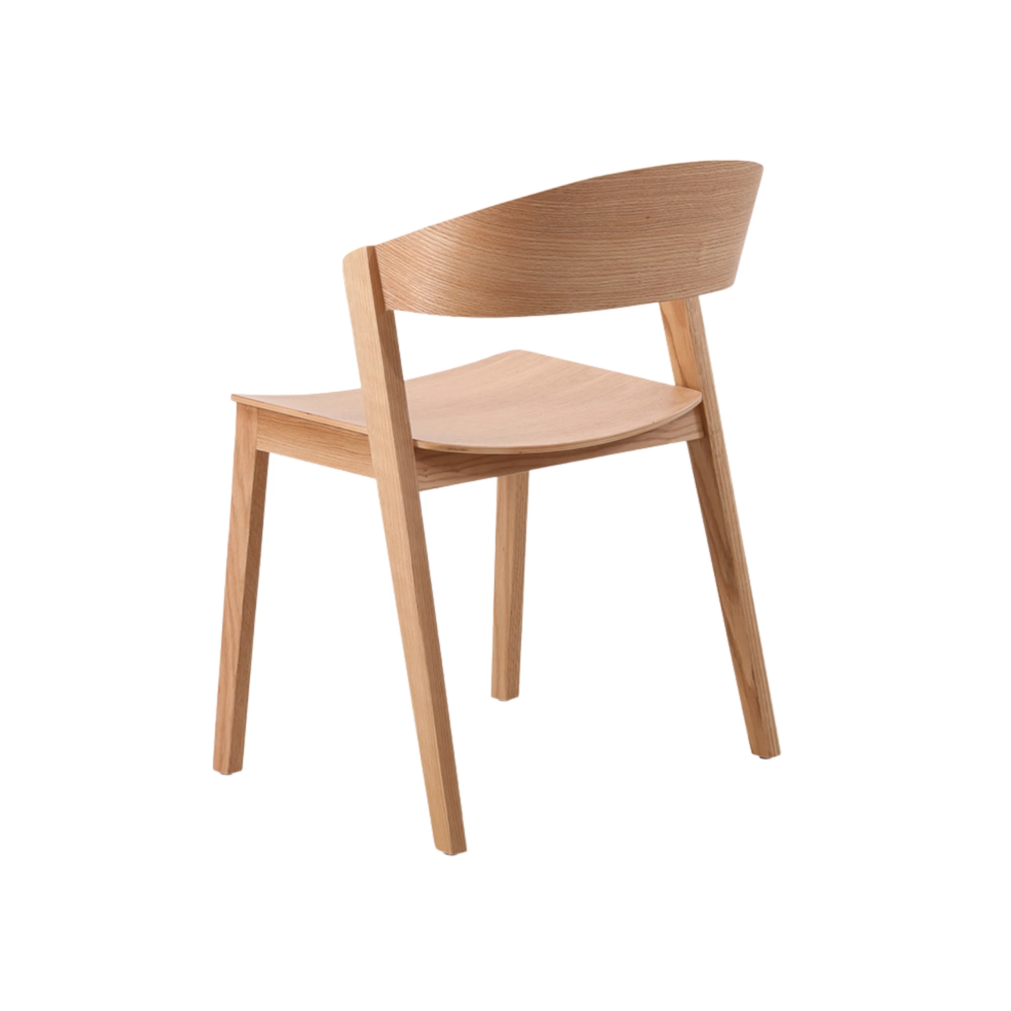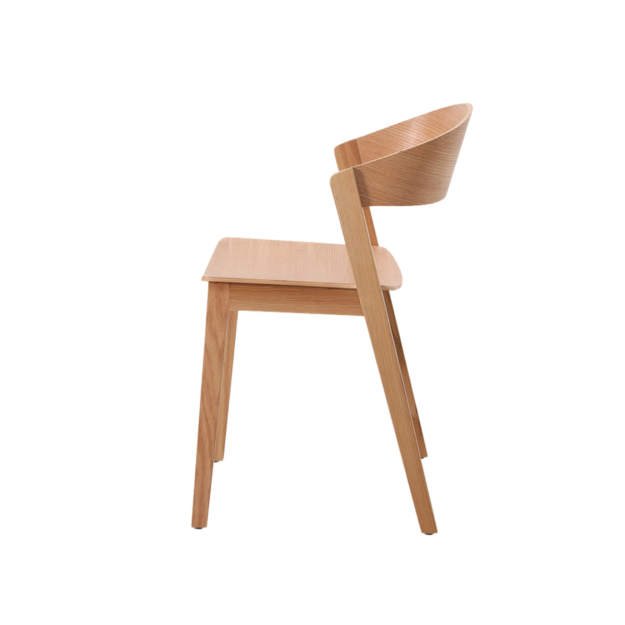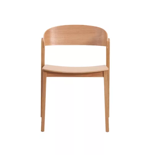 Contemporary oak chair with a curved backrest. Crafted from solid oak, this chair is ideal for stylish HoReCa environments. Minimalist design with excellent durability and comfort.