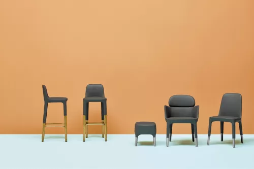 Ester is a blend of elegance, ergonomics, and functionality. Its soft and graceful lines, paired with outstanding seating comfort, make it the perfect choice for the interiors of the most exclusive restaurants, offices, and hotels worldwide. The barstool features an upholstered shell in polyurethane foam with elastic belts and steel tube legs, combining refined aesthetics with durability.