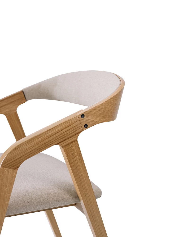 Fame P is a refined chair featuring a curved backrest, solid beech wood frame, and fully upholstered seat and backrest. Available in a wide range of professional fabrics and wood stains, its contemporary design fits perfectly in restaurants, cafés, and hotels, offering both style and comfort. With customizable finishes, Fame P adapts easily to various hospitality interiors.