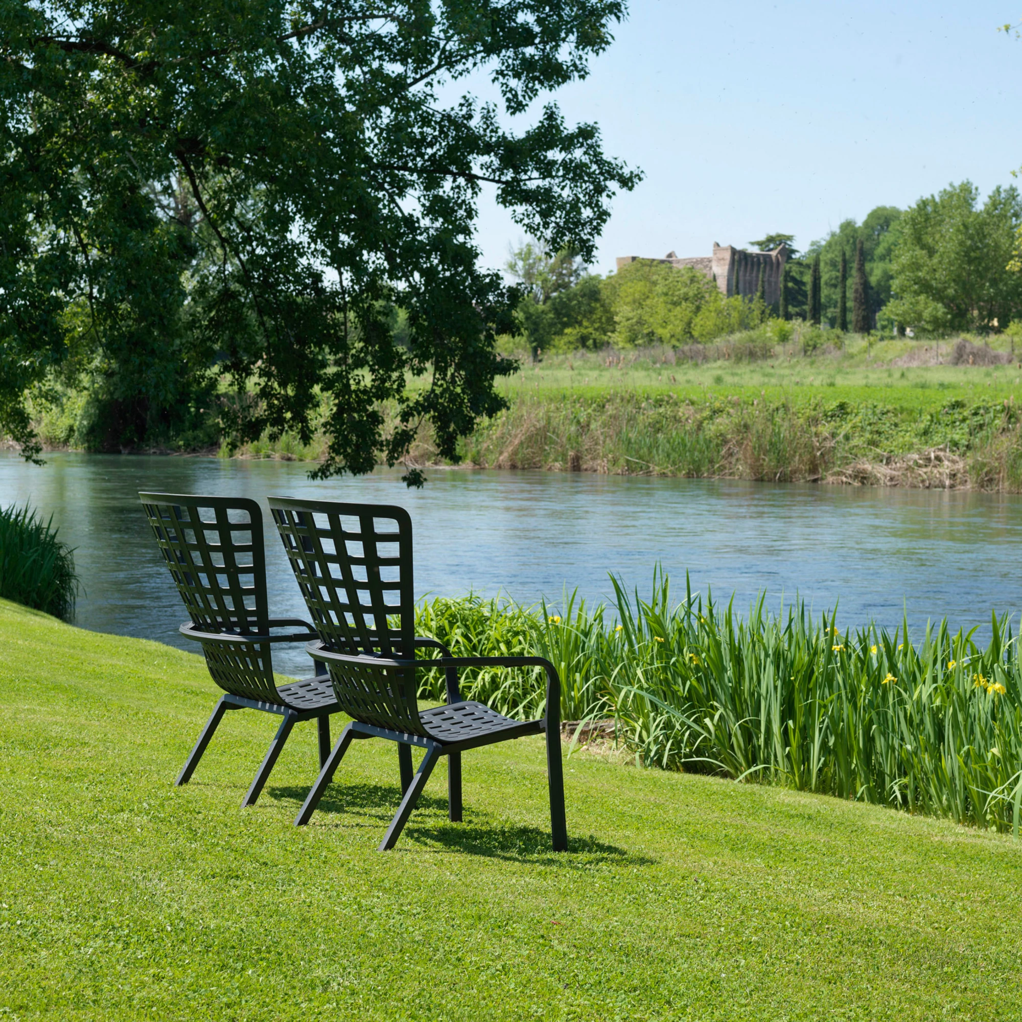 Folio is an elegant outdoor reclining armchair designed for comfort and style, with a flowing, enveloping backrest that seamlessly merges into a generously lowered seat. Made from durable fiberglass resin, it features a modern perforated square pattern and a matte finish, available in sophisticated colors like white, anthracite, tortora, agave, and tobacco. The chair reclines into two comfortable positions, allowing you to relax effortlessly in the open air. Cushions are available on request and designed specifically for outdoor use, crafted from Lino fabric at approximately 40% extra cost. The non-removable cushions are 7 cm thick, made with polyurethane foam padding at a density of 18 kg/m³, and secured with fabric straps and Velcro for a clean, secure fit. Cushion colors include Arctic and Felce, both blending beautifully with the chair’s natural tones. Folio is the perfect addition to any terrace, patio, or garden space where style and relaxation meet.