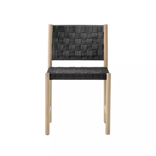 Griante redefines the concept of woven seating through a design that seamlessly merges traditional craftsmanship with contemporary industrial production. This indoor chair features a frame crafted from FSC® C114358 certified ash wood, combining natural warmth with sustainability. The cylindrical legs are finely turned for a clean, elegant silhouette, while the aluminium frame provides reliable support for the seat. Its distinctive feature lies in the handwoven seat and backrest, made in Italy from fully recyclable polypropylene yarn belts with a unique three-dimensional texture. The result is a chair that offers comfort, strength, and refined aesthetics — while remaining easy to disassemble and environmentally responsible.